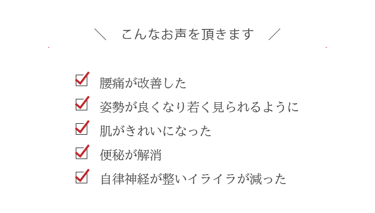 これらの改善を目指し、身体の内側から体質を根本的に変えるアプローチを行っています。