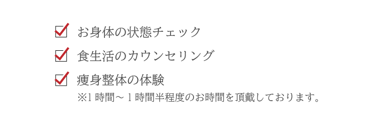 じっくりあなたと向きあい痩せられない原因を分析します。