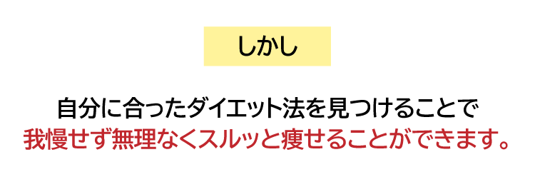 あなたは「効果が期待できないダイエット」に これ以上大切な時間やお金を費やす必要はありません。